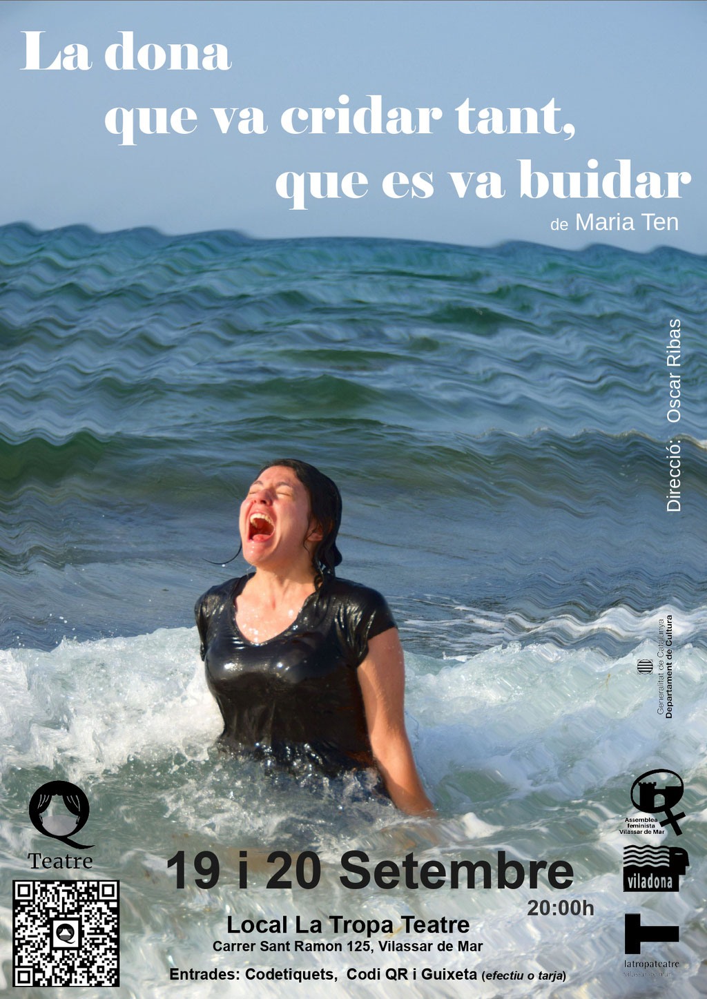 LA DONA QUE VA CRIDAR TANT, QUE ES VA BUIDAR de Maria Ten divendres 19 i dissabte 20 de setembre. Un còctel de monòlegs on conviuen realitat i ficció. Una peça que mesclà les dificultats quotidianes d’una actriu catalana amb la fictícia veu oprimida dels personatges femenins d’Àngel Guimerà protagonitzada per la Laura Millaruelo. A més, l'espectacle s'estrenava en primícia, amb entrades exhaurides des de feia dies.
