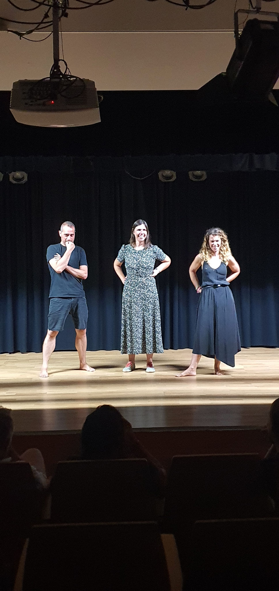 Vam treballar diferents dinàmiques actives i vivencials basades en la improvisació teatral, fent exercicis d'escalfament corporal i vocal, jocs